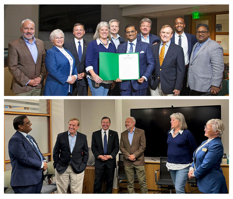 With Consul General Gupta, Bellevue Mayor Robinson, Deputy Mayor Malakoutian, Councilmembers Hamilton, Lee, Stokes and Zahn, and Seattle Orcas co-owner Vijay Beniwal
