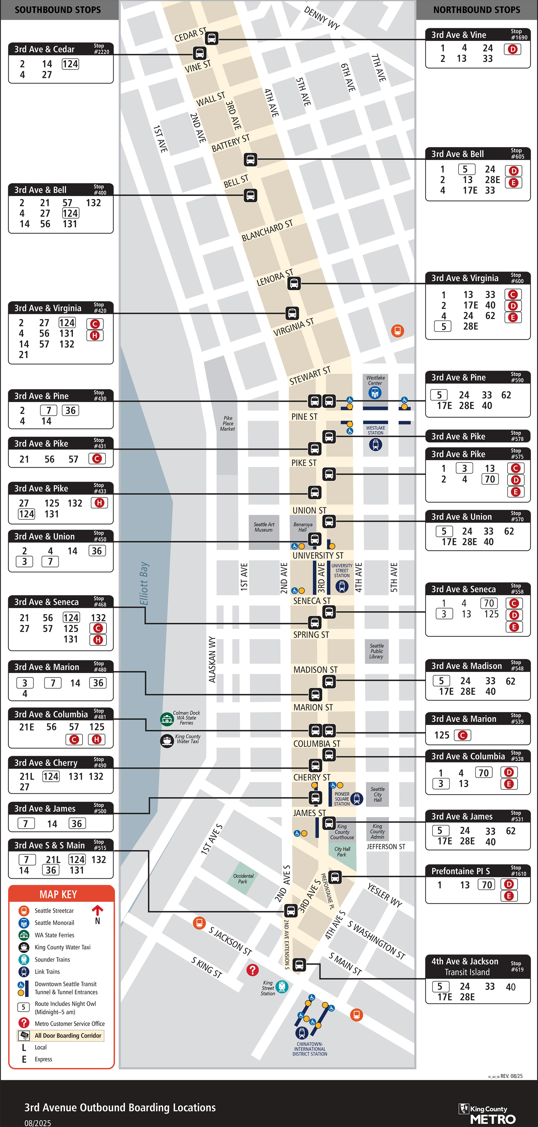 1, 2, 4, 5, 13, 17E, 24, 28E, 33, 40, 62, C Line, D Line, E Line