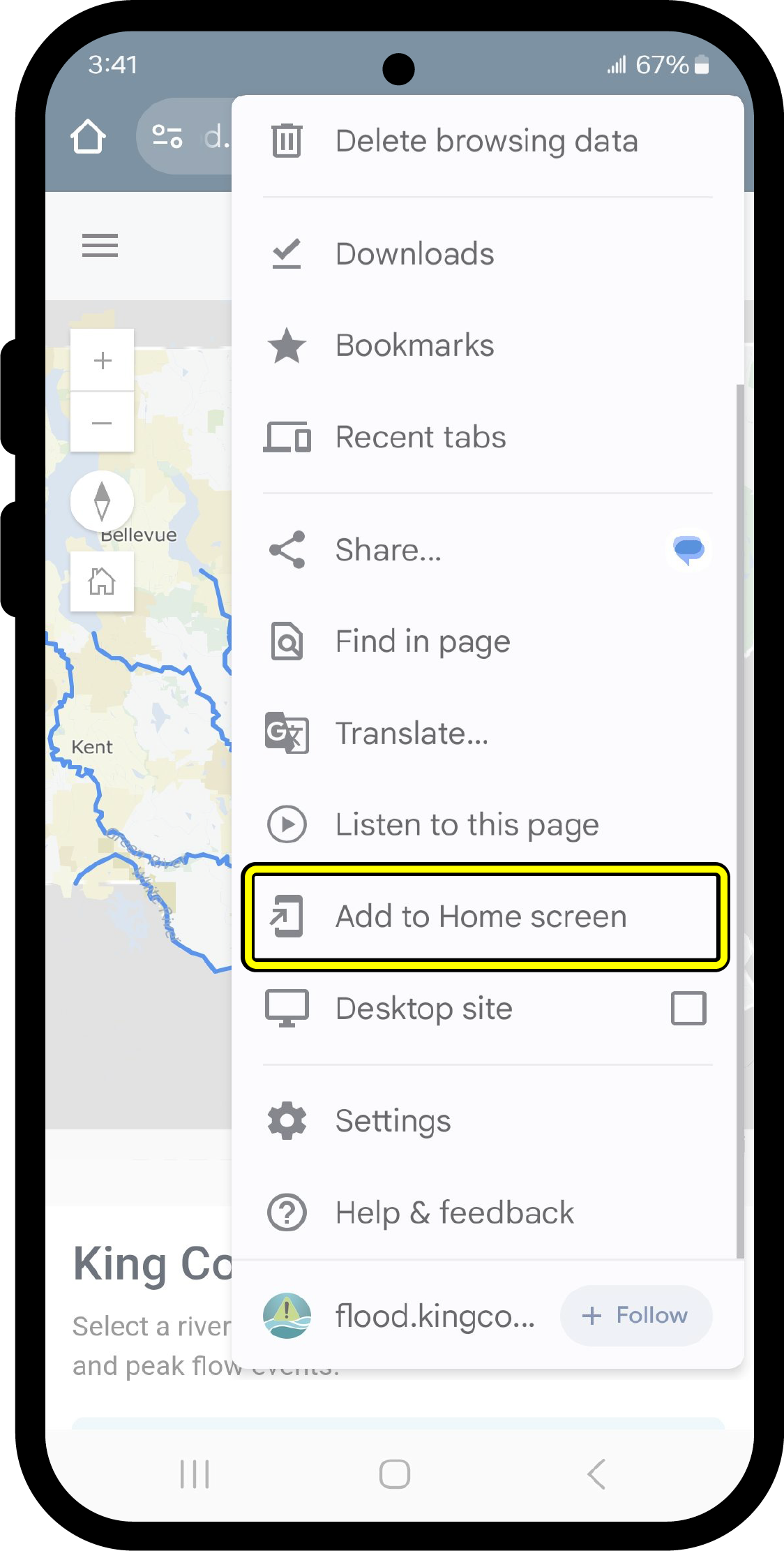 iPhone search bar 2. Navigate to flood.kingcounty.gov.