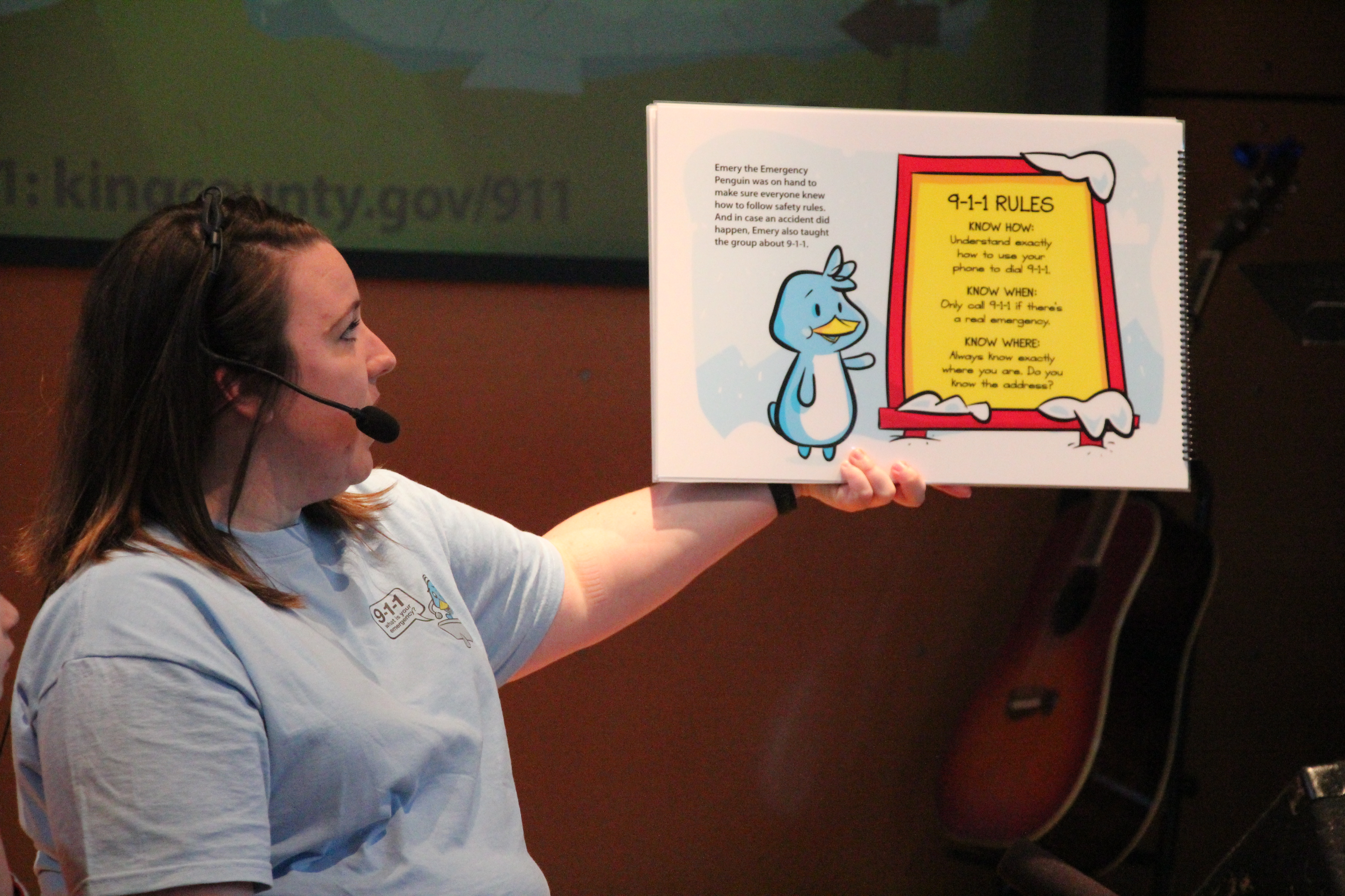The storybook, "Emery and the Ice Carnival," was developed by the King County E-911 Program Office. The book was unveiled today during a special reading event at Woodland Park Zoo. Kids followed along with the adventures of the book's star, Emery the Emergency Penguin, learning the fundamentals of calling 9-1-1: