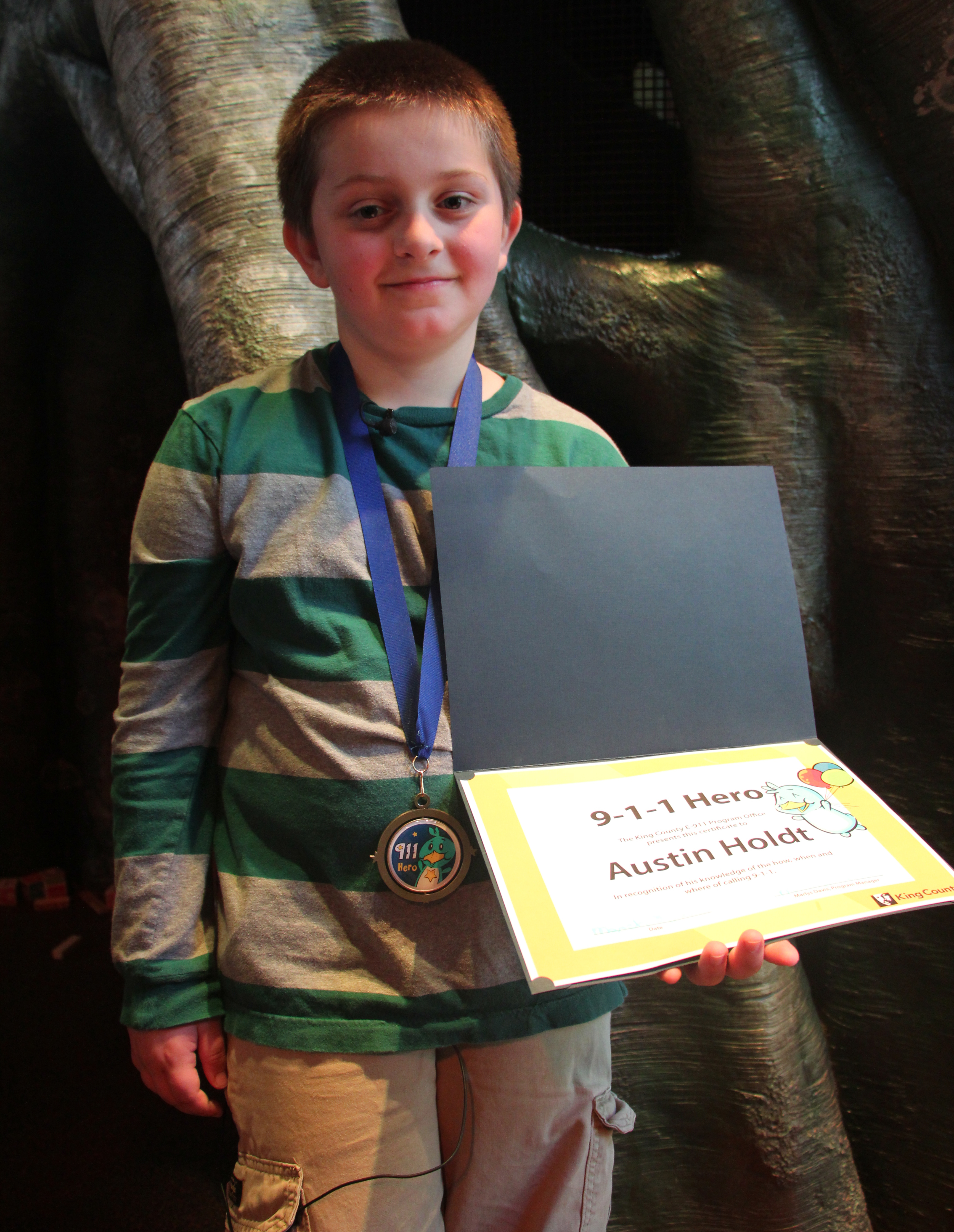"Austin is an inspiration for other children in King County, and through our new storybook we hope more kids learn the how, when, and where of calling 9-1-1," said Marlys Davis, King County E-911 Program Manager.
