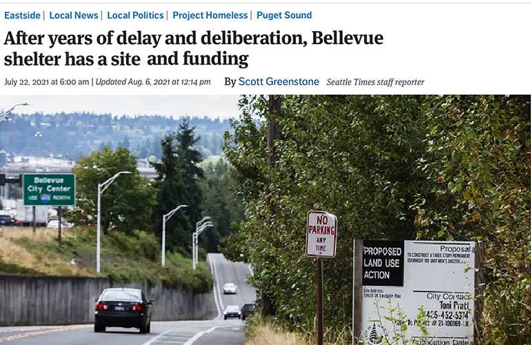 July 2021 | When I was the mayor of Bellevue, I made a commitment with fellow mayors from Redmond and Kirkland to work together to provide a full suite of emergency shelter services for people experiencing homelessness on the Eastside – youth, women and families, and single men. After years of work with public and private partners and the community, we are adding the last piece of that commitment with a permanent men’s shelter in Bellevue.