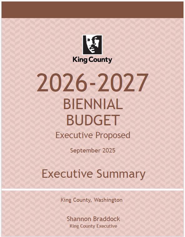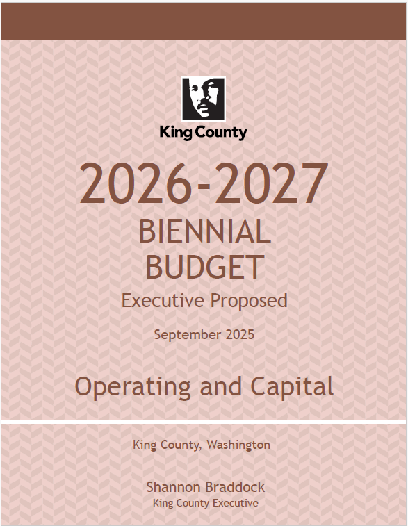 The King County Council will hold hearings on the 2026-2027 Proposed Budget in October and will likely pass the budget in mid-November. The 2026-2027 Adopted Budget goes into effect on Jan. 1, 2026. Visit kingcounty.gov/council/budget to learn more.