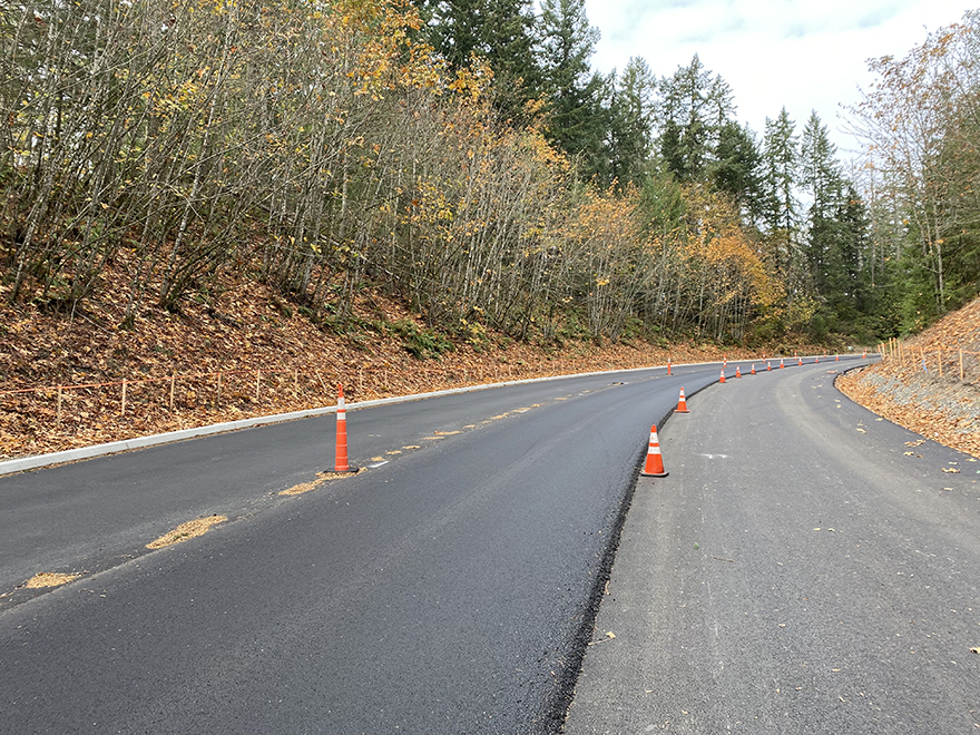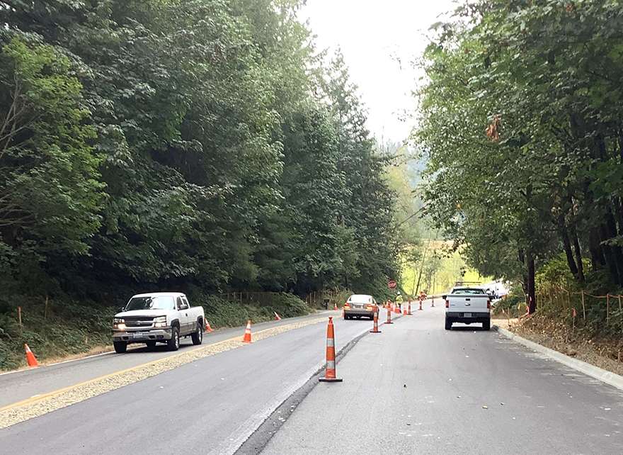 King County rebuilt one side of the road at a time. Two-way traffic was maintained throughout construction as much as possible. Construction work included excavating, restoring, and repaving the roadway and shoulders from the ground up. The county also replaced guardrail and improved roadside drainage.