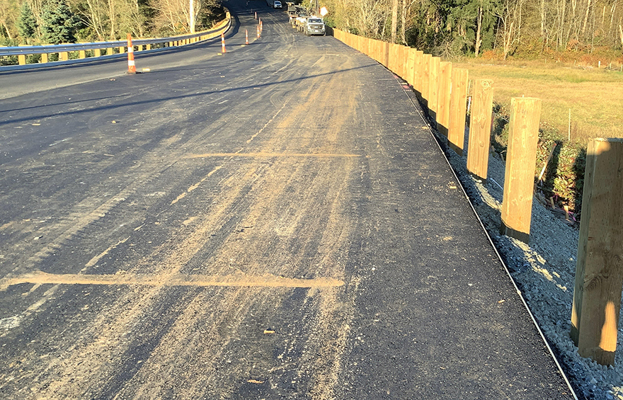 There are three travel lanes on 218th Avenue SE, two lanes northbound and one lane southbound. This project removed and replaced 1.4 miles of 218th Avenue SE from SE Green Valley Road to SE Auburn Black-Diamond Road west of Black Diamond, WA. This road is a King County lifeline and evacuation route. Many travelers also use this section of road as an alternate access route to State Route 169 (Enumclaw-Black Diamond Road SE). Over time, the pavement has been repaired and patched repeatedly. The road and the support system under the road were in poor condition and needed to be replaced. Restoration of this well-traveled road ensures its usefulness for years to come.