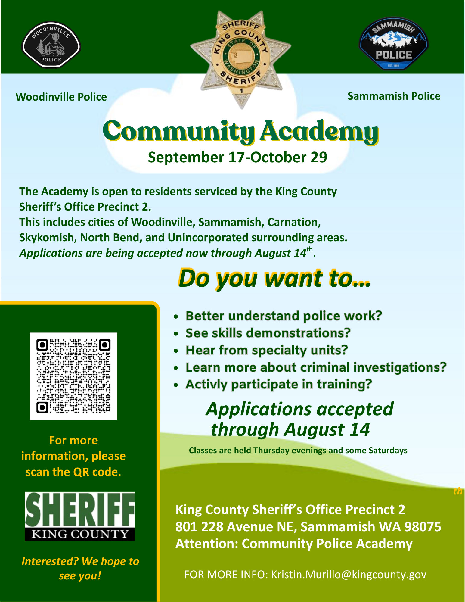 King County - Sammamish - Woodinville Community Police Academy is accepting applications for 2025!