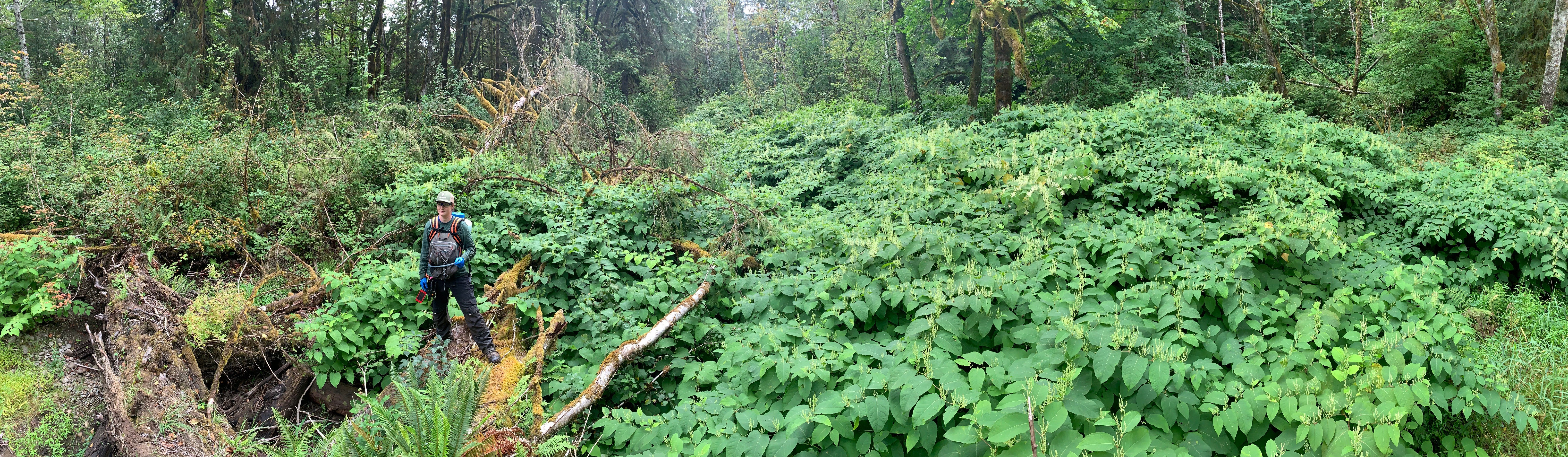 When you get the eye for it, knotweed is easy to spot in large stands on open riverbanks. It's harder to see just how far it can spread into a floodplain forest in a short time and keep other plants from growing. Established knotweed impacts water quality, habitat health, and can damage property. The King County Noxious Weed Control Program works to remove knotweed and restore native plant communities along county rivers and floodplains. Knotweed is famously difficult to control and success is only possible with the persistent community effort of county residents, private landowners, and public agencies.