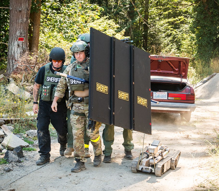 The unit personnel train King County Sheriff’s Office Deputies on how to properly respond to explosive or hazardous calls. They also offer programs to teach other agencies how to recognize and react to a hazardous situation. The unit provides instruction on responding to bomb threats and searching for suspect devices for schools and other public agencies. The technicians also support other King County Sheriff’s Office units, such as the Tac-30 (SWAT) team and the Major Crimes Unit, with UAS support, breaching barricaded structures, recognizing booby traps, and x-ray diagnostics. In addition, they also manage the department-wide respiratory protection program.